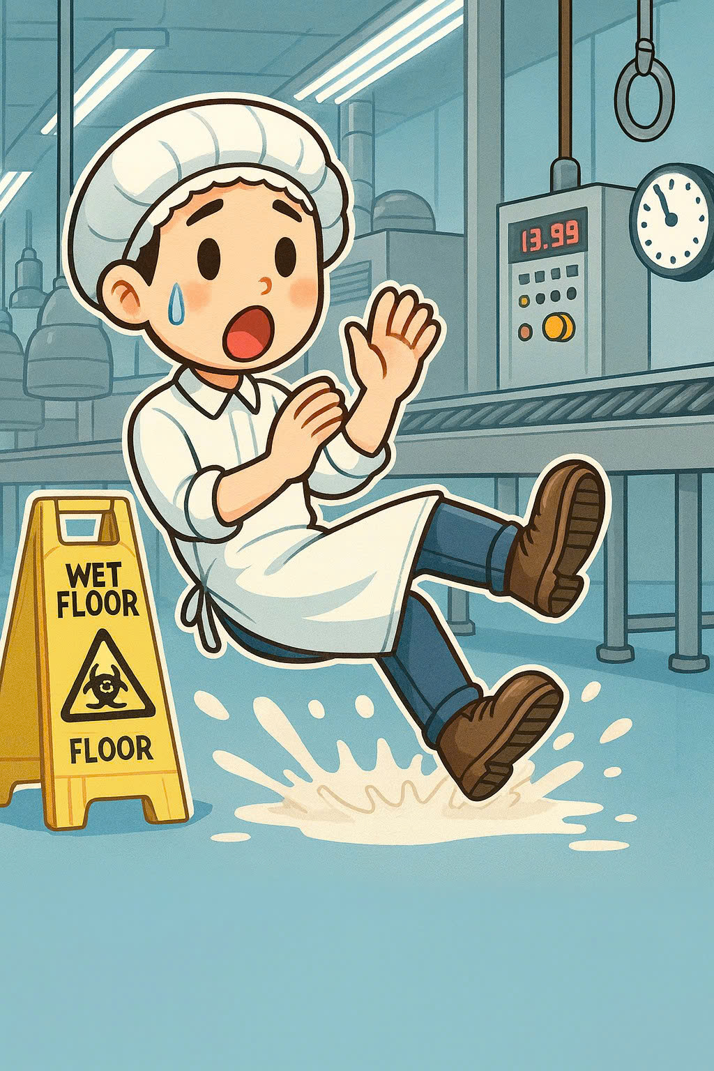 49. 食品工場で従業員が滑って転倒し、軽い怪我を負いました。最も適切な対応はどれですか?